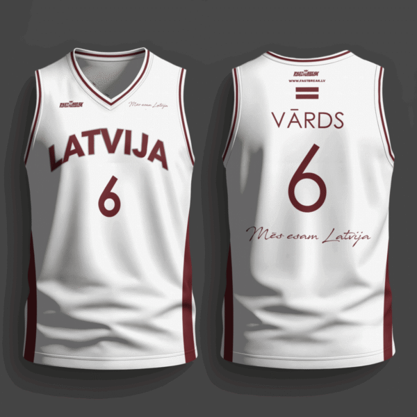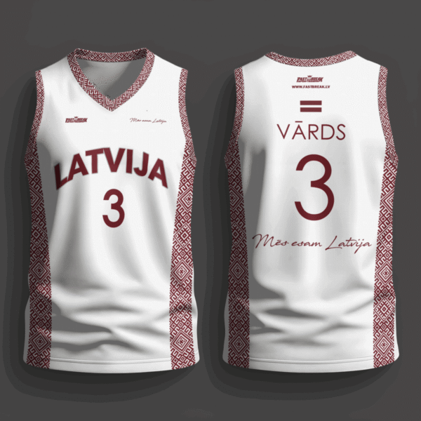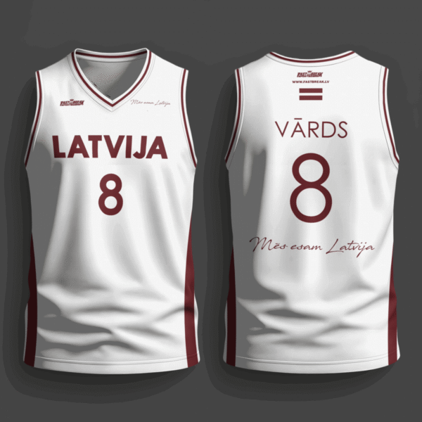 FASTBREAK.LV Latvijas Basketbola Fanu Krekls Raksti – BALTS- Personalizēts