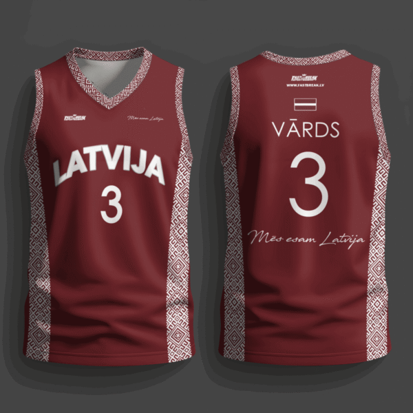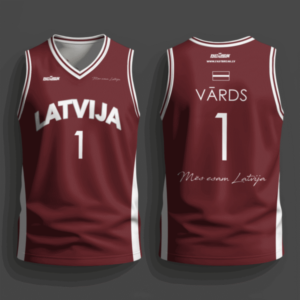 FASTBREAK.LV Latvijas Basketbola Fanu Krekls Raksti – SARKANS – Personalizēts